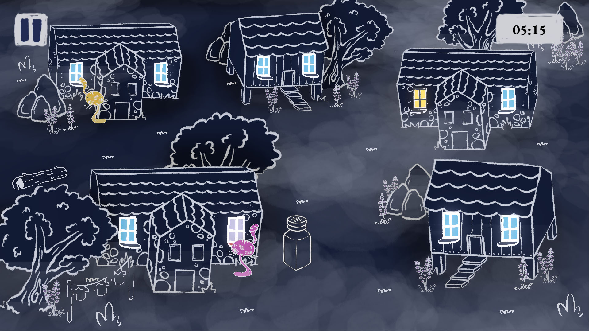 Os gatipedros andan soltos pola vila de noite! Usa o sal para espantalos e impedir que esperten os meniños.